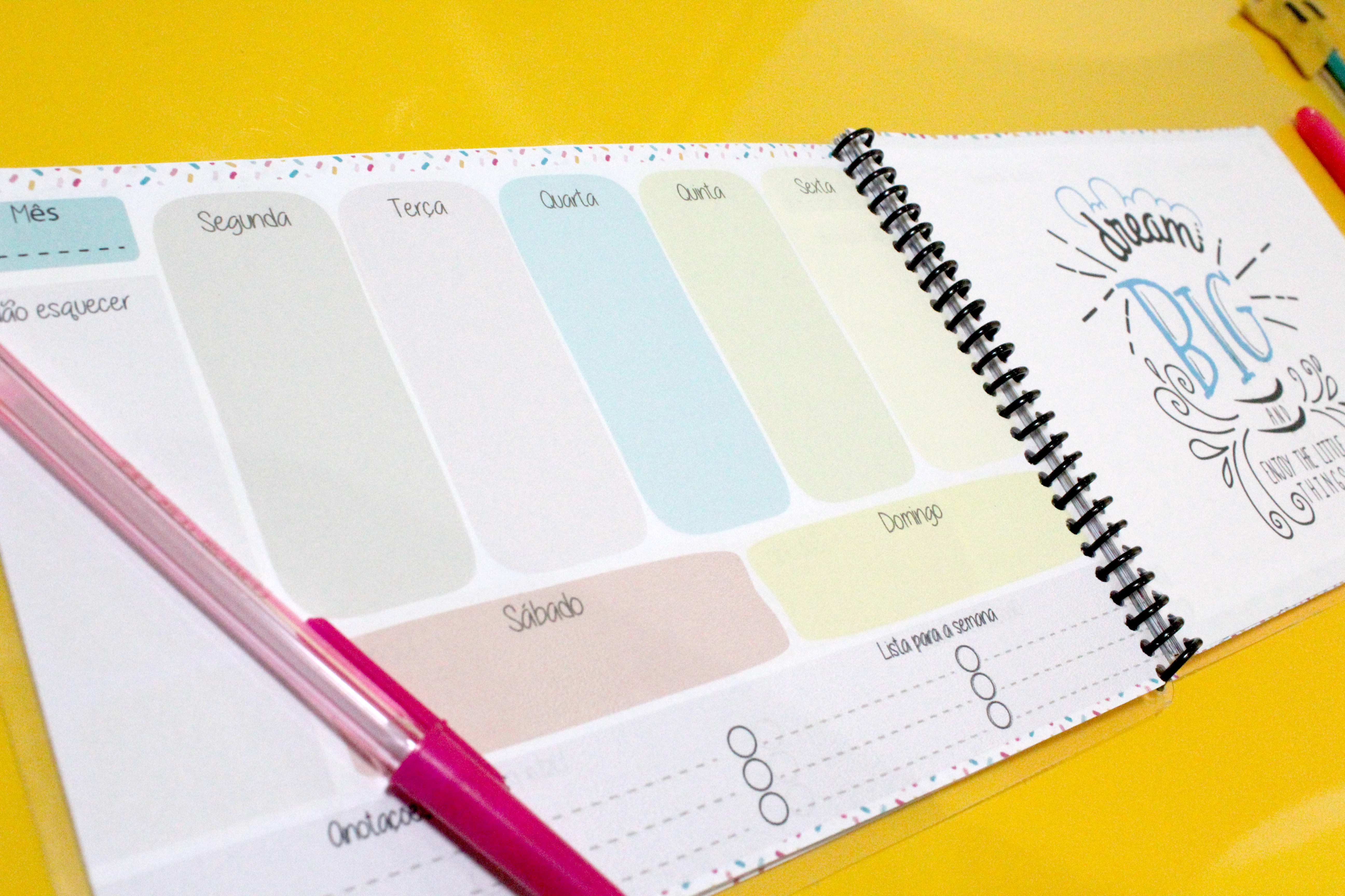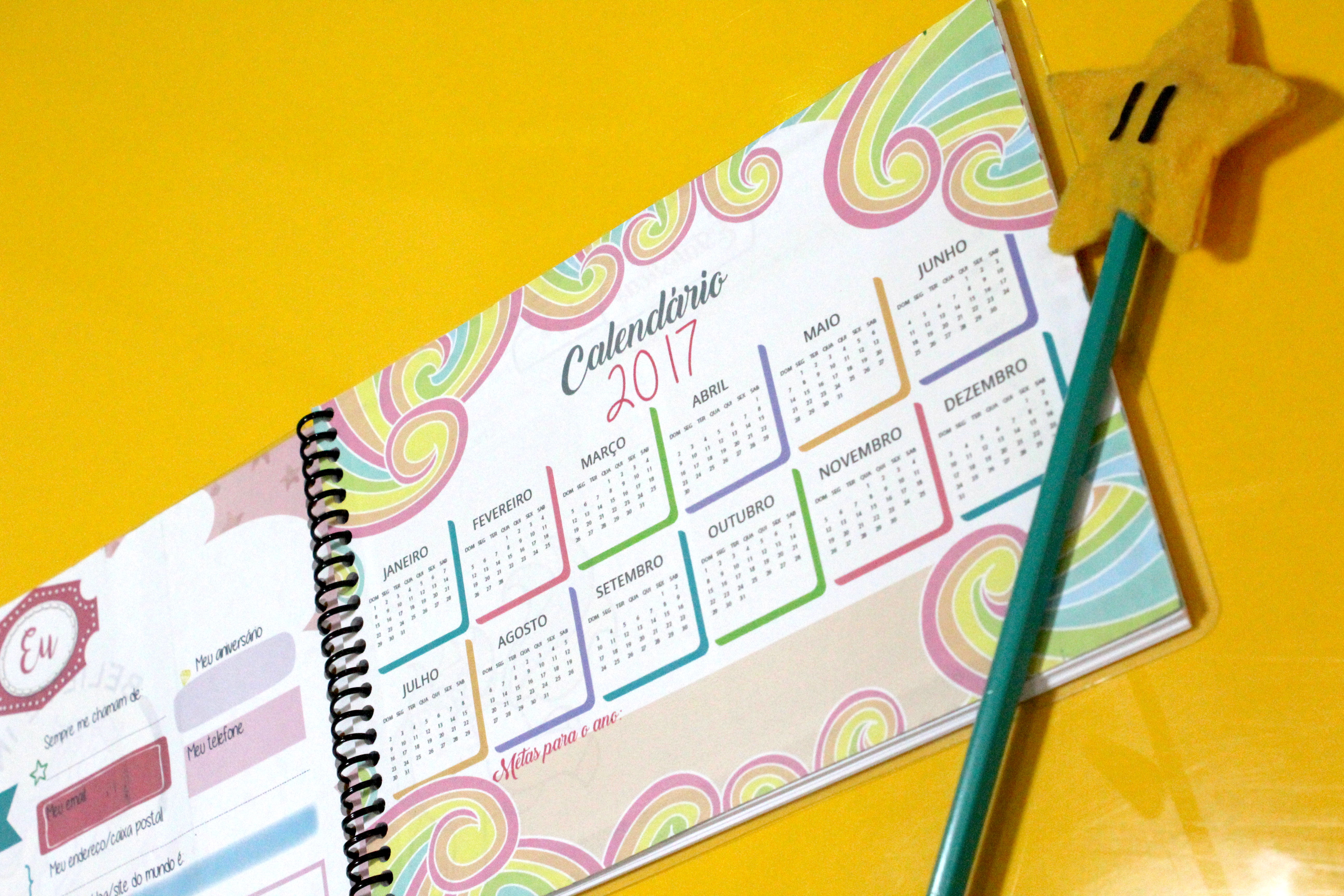 A ideia é que vocês possam se organizar de forma fofinha, deixei espaços para colocar as estatísticas do blog e das mídias sociais, tem espaço para você colocar suas metas, isso é importante para que você possa visualiza-las diariamente, assim podemos alcançar mais rapidamente nossos objetivos, deixei espaços para colocar os filmes e livros que precisamos ler durante o ano e muito mais…