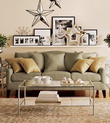 Achei bem interessante também esse modelo abaixo, colocando os quadros em uma prateleira super discreta na parede do sofá.